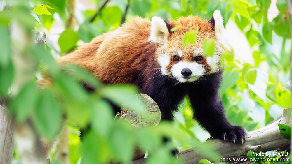 木の上で毛づくろい。涼しく感じる日は、人間もレッサーパンダも助かります。