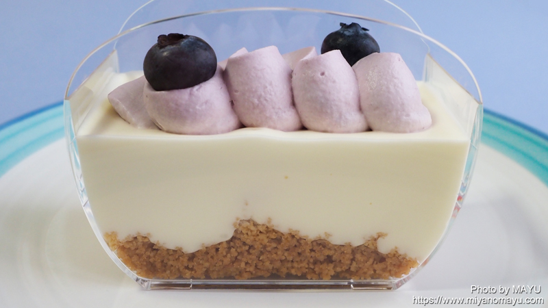 トッピングはブルーベリー色のホイップクリームと、ブルーベリー2粒。シンプルですが、チーズの濃い味わいも感じられて、美味しかったです。