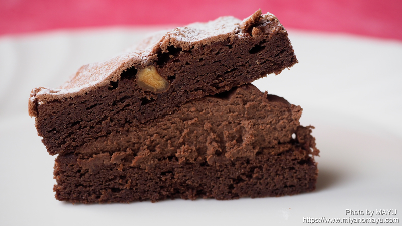 2枚のチョコレートスポンジケーキの間に、ビターチョコのガナッシュクリームがたっぷりサンドされています。