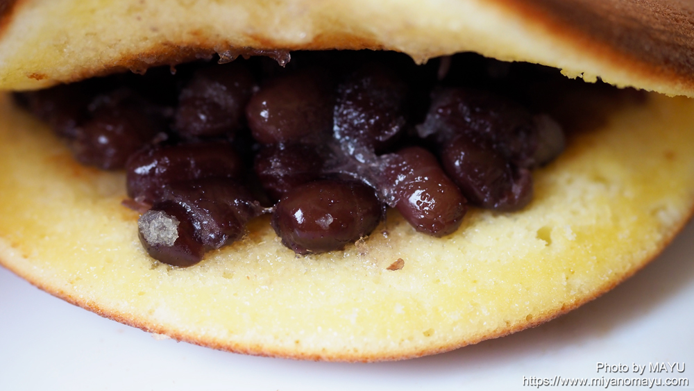 きめ細かくふわふわな生地の間に、小豆餡・・というより美味しい小豆が重なり合って詰められているという感じ。控えめな甘さに炊き上げられているので、小豆の風味を味わえます。