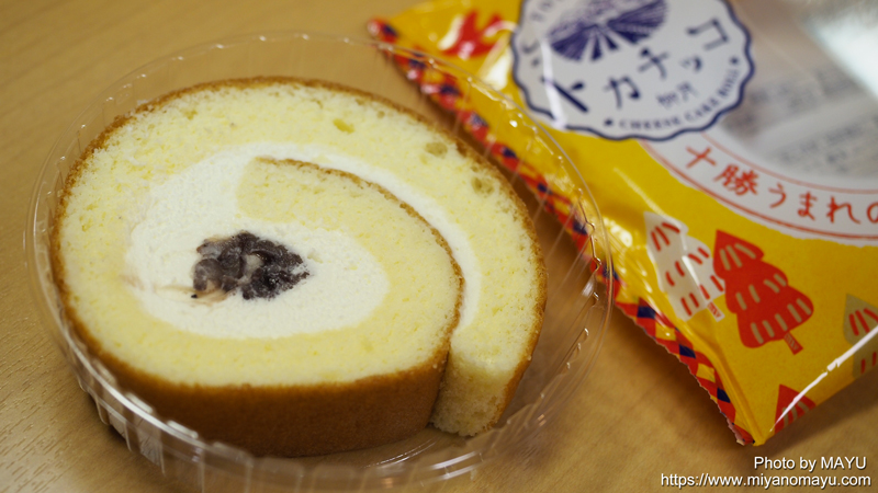 チーズ生クリームと小豆粒あんがスポンジでロールされたケーキでした。