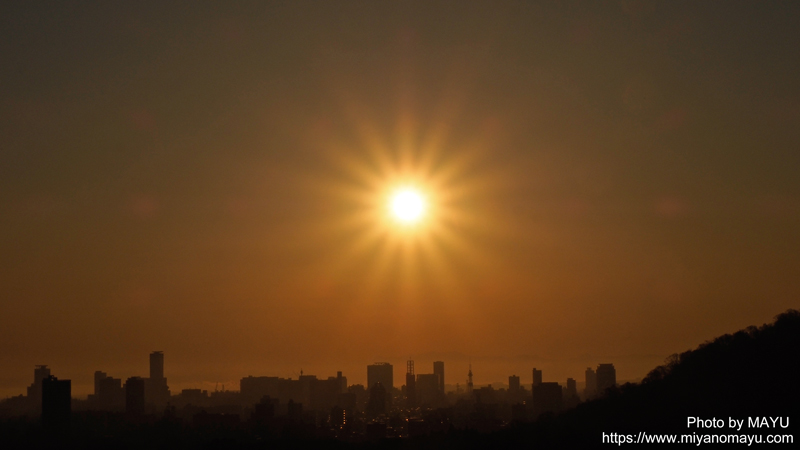 都会的な街並みのシルエットと、太陽の力強い美しいオレンジ色が本当に美しい光景…^ ^とても癒されました!