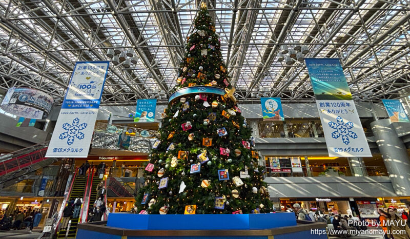 再び新千歳空港にやってきましたが、ディスプレイはすっかりクリスマスに変わっていました。昨年はディズニーの「モアナと伝説の海」のクリスマスツリーでしたが、今年はルタオのクリスマスツリー。