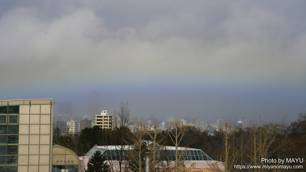 2026年2月28日、12:11の虹。冬の昼の太陽の角度だとこう見える。