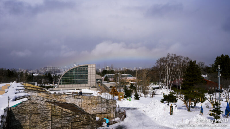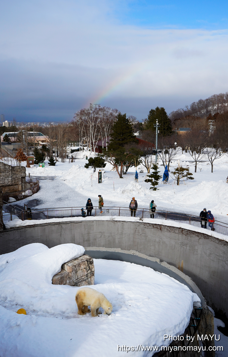 ホッキョクグマのララと虹を一緒に撮れた貴重な瞬間になりました。