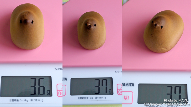 1個の標準の重さは35gとありますが、今回は36g、37g、37gでした。