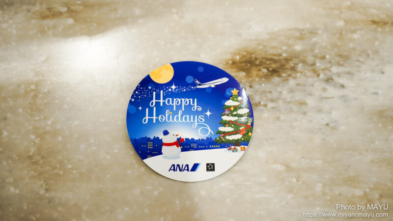 ANAラウンジにあった、クリスマス限定のステッカー。