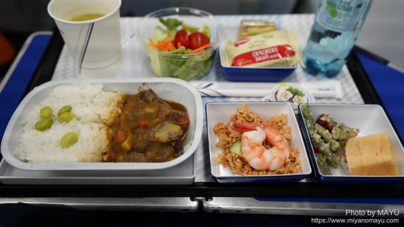 機内食。ビーフカレー。