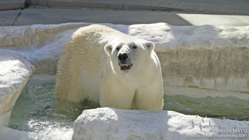 夏は餌入り氷をもらう瞬間を見ましたが、今日は給餌のタイミングを見られませんでした。