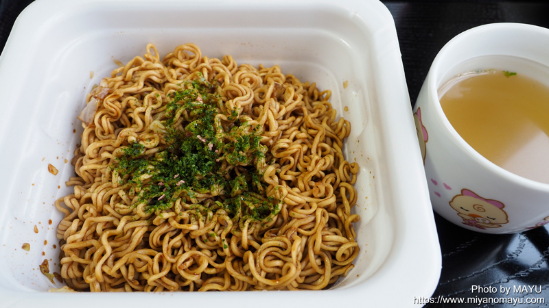 こちらはいつもよりちょっと濃いめ。やきそば弁当は、たまにしか食べないので、「ちょっと」の差がわかりづらいのですが、液体ソースがとろりと濃厚そうだったので、おそらく濃い味わいになっていたはず。